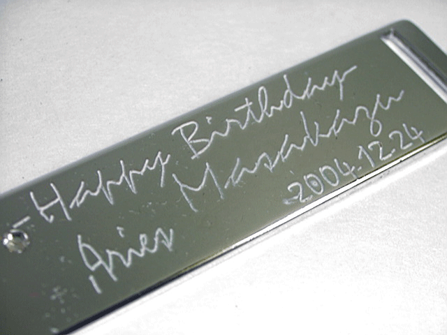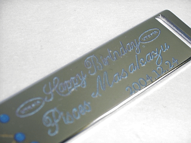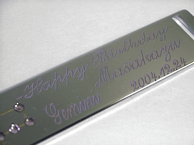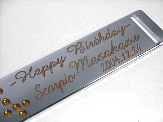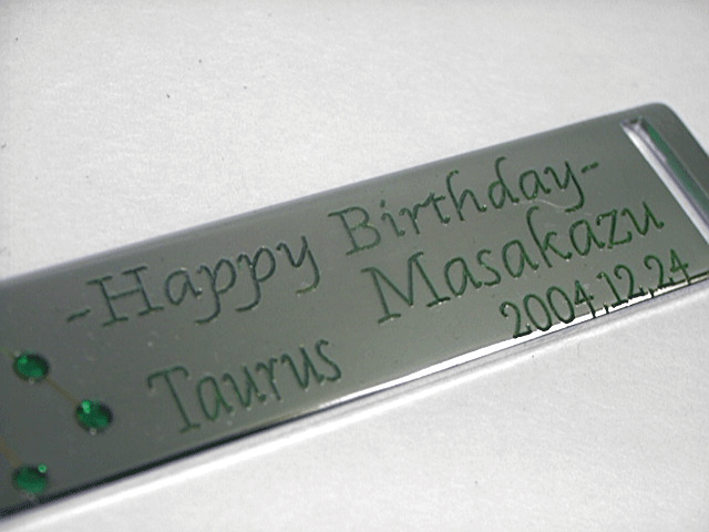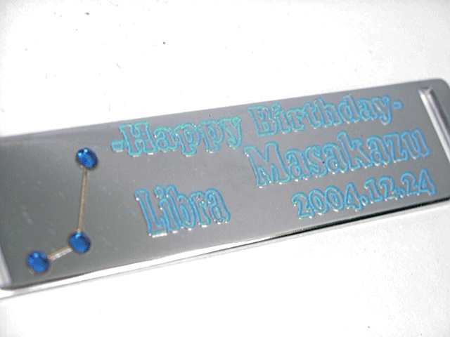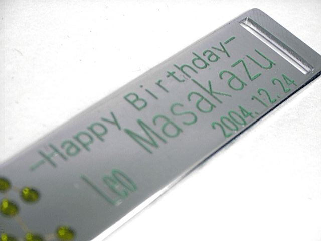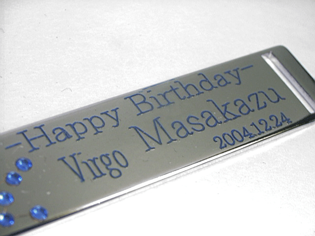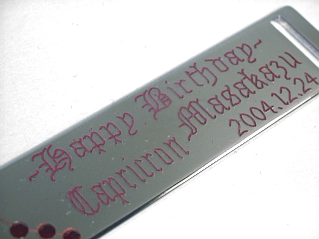 深くへこんだもじに特殊インクによりカラーリングします。 カラーは12色と豊富に取り揃え携帯電話の本体カラーを意識しました。 (あくまで類似色なのでまったく同色とはいきませんが) |