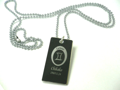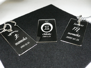 | 刻印内容は、名前(字数の多い場合は文字が、小さくなります。)血液型、電話番号をお入れします。 |